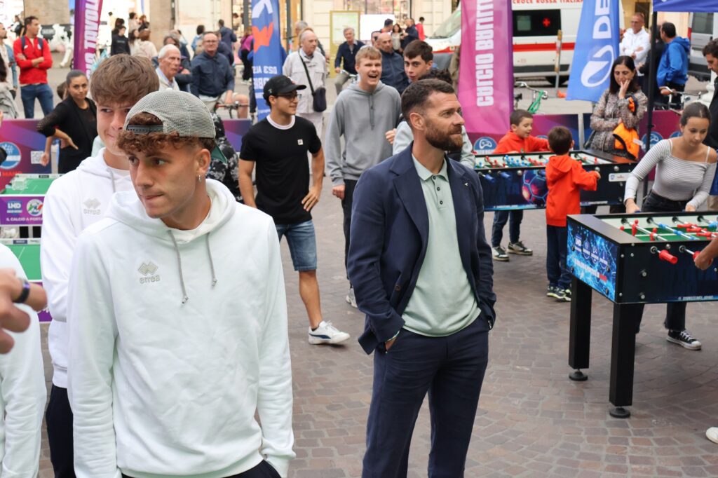 Grande protagonista dell’evento è stata la Ferrara Calcio Ars et Labor, nuova squadra cittadina nata per raccogliere l’eredità sportiva e affettiva della gloriosa SPAL. I suoi calciatori hanno regalato momenti di spettacolo e interazione con il pubblico: Giuseppe Iglio, Alessandro Prezzabile, Paolo Carbonaro e Tommaso Occhi si sono sfidati alla console su FC 26, mentre Luca Sinigagliesi e Andrea Casella hanno improvvisato telecronache e commenti tecnici, tra l’entusiasmo dei presenti. Non sono ovviamente mancate appassionate sfide al calcio balilla e qualche manovra, “in punta di dito”, sul tappeto verde del Subbuteo.