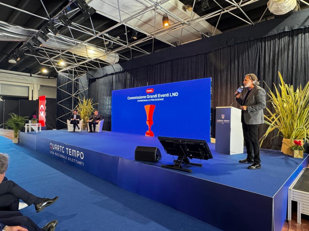 Il terzo e ultimo giorno di LND Quarto Tempo – L’Innovazione del Calcio Dilettantistico si è aperto con il panel “Cerimoniali e Precedenze”, presentato da Francesco Grazioso del Centro Studi LND e da Stefano Iorio, referente commerciale e marketing della Lega Nazionale Dilettanti. Nel corso dell’incontro, la Commissione Grandi Eventi ha illustrato i nuovi documenti elaborati con l’obiettivo di uniformare l’organizzazione delle manifestazioni ufficiali e rafforzare l’identità visiva del calcio dilettantistico.